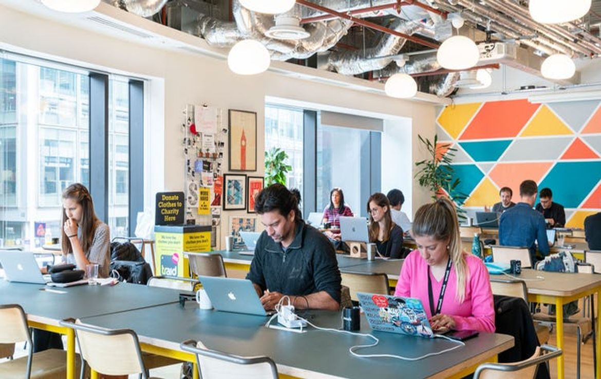 On the edge of Shoreditch, this London office space occupies a modern glass structure with five floors dedicated to coworking. From the ninth floor you’re treated to sweeping views of the East London skyline. The space has a cozy, communal feel, making it easy for members to meet each other over a cup of tea or coffee in one of the open and airy common areas. The dog-friendly WeWork Spitalfields attracts people from a wide range of industries, allowing lots of collaboration. It’s close to an eclectic range of restaurants, bars, and pubs at Spitalfields Market and one-of-a-kind shops at Brick Lane Market. It’s near the Liverpool Street and Shoreditch High Street Underground stations. If your business depends on making connections, there’s no better choice than WeWork Spitalfields.
