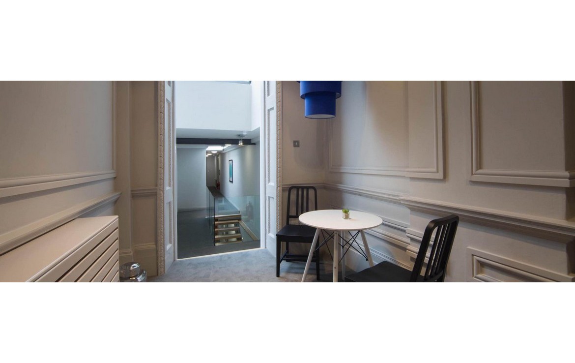 Our John Street office space is a real find. This understated 17th-century Georgian workspace houses a grand central staircase, a number of ornate fireplaces, high ceilings and renovated vaults. It really is something special. The interiors have a chic country house vibe complete with restful woodland-themed murals, forest-inspired wallpaper and muted colours, all designed to complement the building’s original period features.