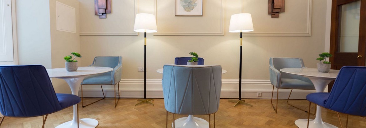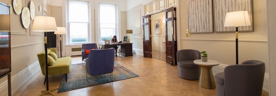 Recognising that Seven Grosvenor Gardens only required small touches to compliment the historic features, we continued with the Victorian theme and used tiling of the same era, as well as grand chandeliers to complete this unique office solution. Check out our London West End area guide for more information about the area.