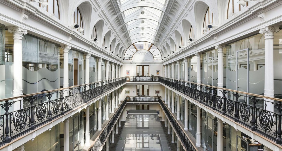 Formerly the headquarters for the London Patent Office in Holborn, Central Court is a unique workspace. A refined, galleried reading room, glass domed roof and balconied walkways create a distinctive place to work.